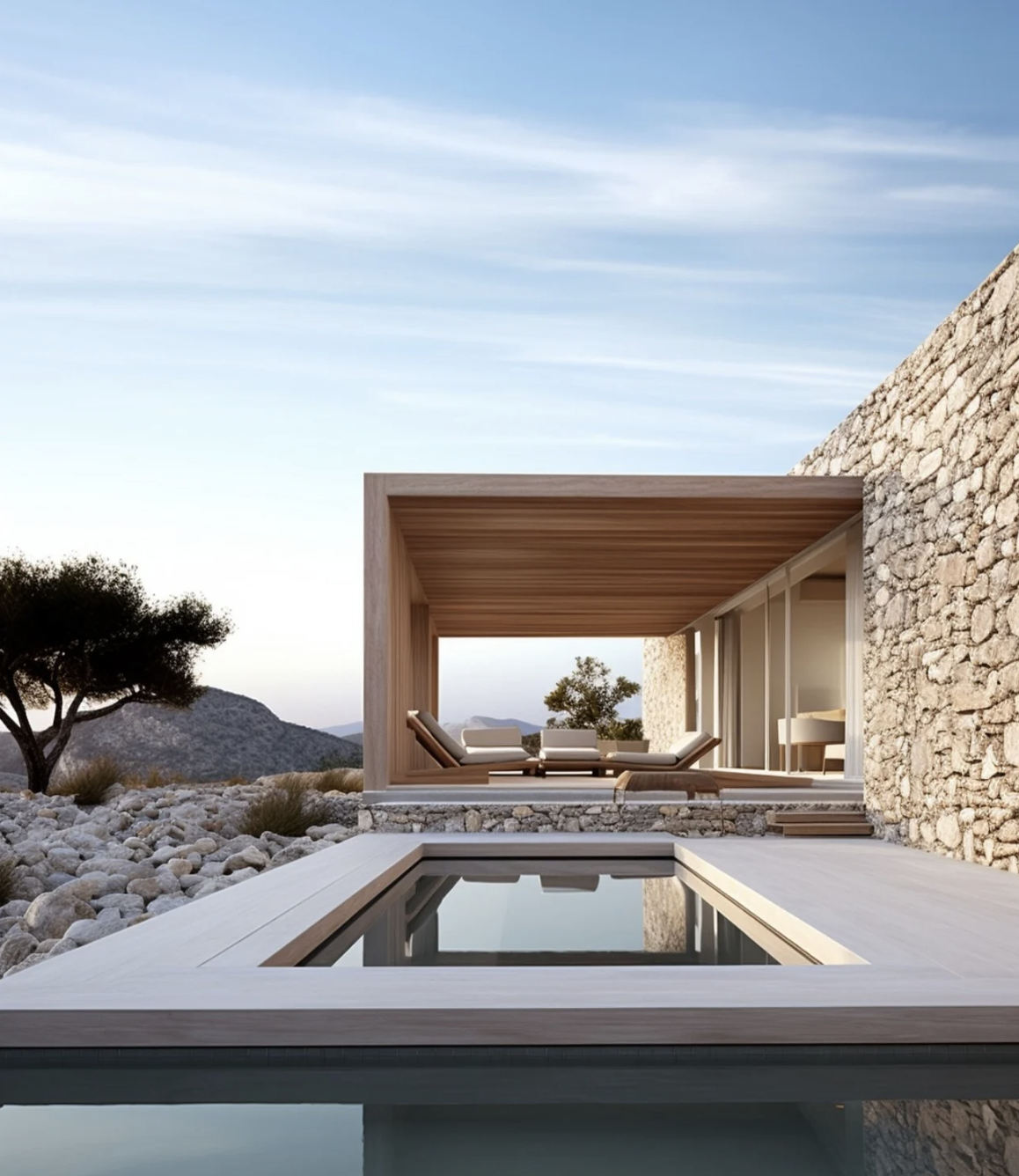 - Pools: Minimalist edges, clean geometry, and water that mirrors the sky.