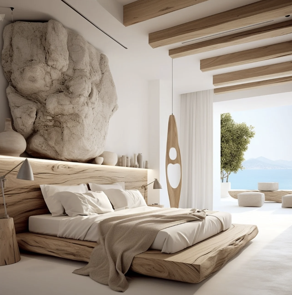 - Flooring: Stone pavers in irregular organic patterns, evoking traditional craftsmanship with modern precision.